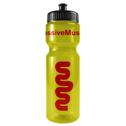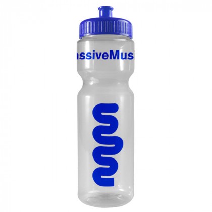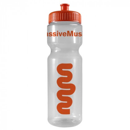This custom printed clear plastic sports bottle is a clear winner! The perfect companion for a hike or outdoor event, its impressive 28 oz. capacity can handle even the biggest of thirsts. This great value transparent sports bottle is made of BPA/BPS-free PETE and features a contour grip neck and durable side walls that resist creasing. A huge selection of bottle and lid colors is available to mix and match for a custom look to complement your logo. Made in the U.S.A.