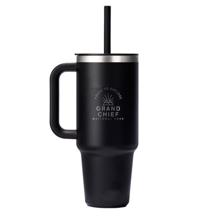 This is it, the ultimate and the favorite in promotional Hydro flask drinkware - the 40 ounce All Around Travel Tumbler. Hydration is an all day event, and having 40 ounces of water that will stay cold 9 hours due to the superior double wall TempShield pro-grade stainless steel insulation means there are fewer interruptions for refills or ice during a busy day. For commuters, the tapered shape of this custom HydroFlask that fits in cup holders is a must, and for people on the move, the leak-proof nature of the snug, press-in straw lid and the strong ergonomic handle are important features. The exterior powder coat finish will highlight logos and will not be marred by annoying condensation. An added benefit of Hydro Flask is their support of parks through donations for upkeep and improvements that make them more accessible to all. Customizing this promotional Hydro Flask with an engraved imprint on the opposite side of the Hydro Flask logo is included in the price.