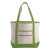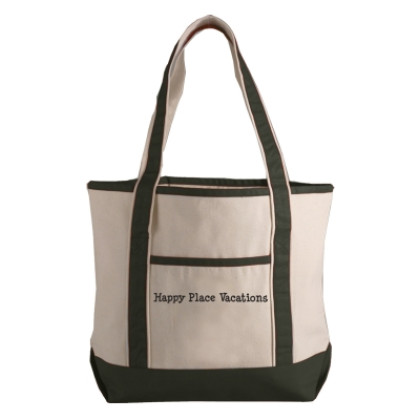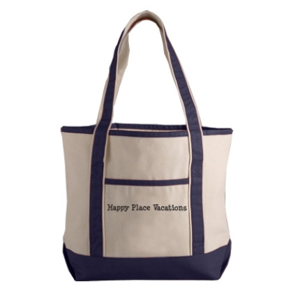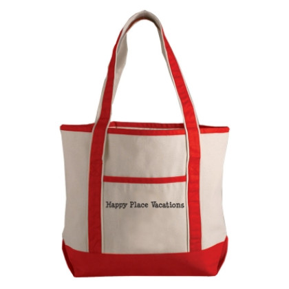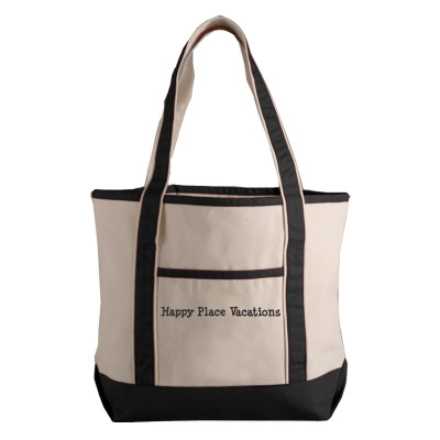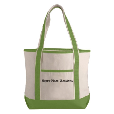 This color trim boat bag has a classic look and a extra large body to make it the ultimate tote. This bag is built to withstand any punishment a sailor can dish out. Made of cotton with 22" handles and interior zippered pocket and a front pocket. A one color imprint is included in the price. Additional colors are available for an extra cost. Please call for more details.