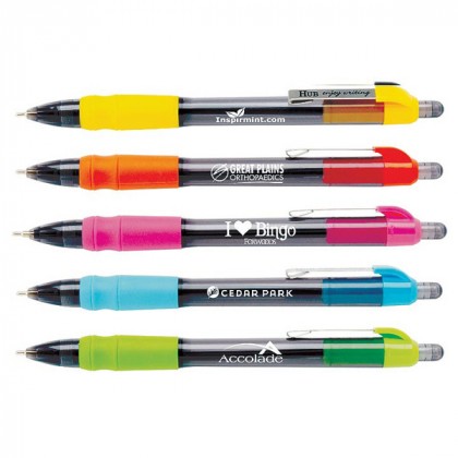 Some people think there's no way to improve on pen technology. Wrong! When you love pens like we do, you are always dreaming up new ways to improve, and the MaxGlide line is the latest answer. Featuring a newly formulated hybrid ink, this click pen offers a gel experience with the consistency of a ballpoint! Your customers will see the difference from the moment the pen hits paper. Also features an air-cushioned pillow grip for superior writing comfort. The smoky barrel and brightly colored trim complete this pen in an attractive and eye-catching way. The perfect way to go hybrid! Available with blue or black ink. Price includes a one-side, one-color imprint. A white imprint is recommended. Ships with a protective wax tip, remove prior to use. Please call for more information.
