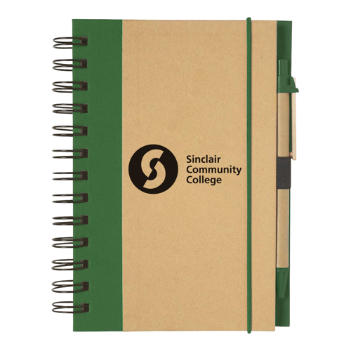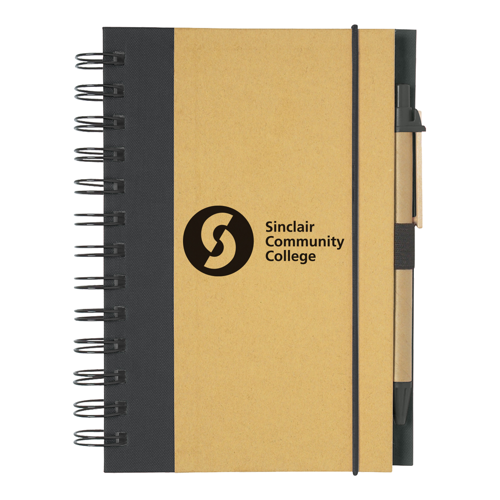 This eco-friendly spiral notebook is perfect for those who want to stay organized while minimizing their environmental impact. It contains 80 lined pages, providing ample space for notes, ideas, and to-do lists. Made with sustainable materials, this notebook is designed to help reduce waste without sacrificing quality or style. The set also includes a matching click pen with black ink, ensuring you have everything you need to jot down your thoughts. Whether for work, school, or personal use, this notebook and pen combo is a responsible choice for any writing task. The pricing includes a one color imprint in one location. An additional imprint color is available for an extra fee.