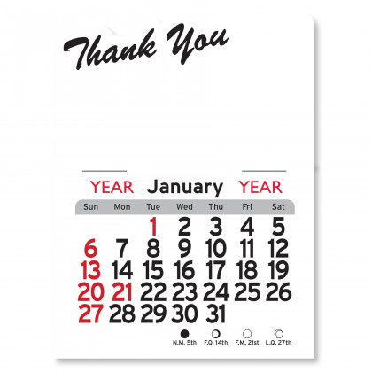 Show your customers you're grateful for their business with this promotional calendar. Great for any business that wants to promote a friendly image or keep ahead of its competitors. Made in the U.S.A. Price includes a display box and one color imprint on a standard calendar pad. A variety of other pad options are available for an added price, including several full-color designs. Ask about our Spanish language options. Includes a display box for easy giveaways. Gift envelopes are also available for an added price.Some imprint colors work better than others on certain vinyl colors. Please call for assistance or recommendations