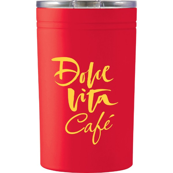Summertime fun, wintertime commute, or any time of the year this Sherpa 11 Vacuum Tumbler & Insulator is the custom logo printed item your active clients will love. Keep your beverage cold for up to 15 hours or hot for up to 5 hours! Great for coffee and cocktails, or pop off the lid and use for your favorite canned beverage. Features double wall construction, vacuum insulation with clear, press-on lid with slide closure. Fantastic choice of colors to fit your mood or your brand theme. The affordable price of this premium insulated travel mug and koozie is hard to pass up. Add your logo and impress your guests and customers with this popular gift. A one-color, one-location imprint is included in the pricing. Multi-color imprinting is available for an added fee. Please call for details and pricing.
