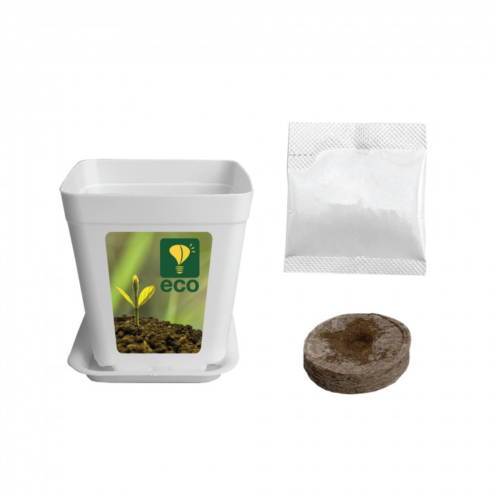 Grow brand love with the Sow Easy Planter Kit—a compact custom planter kit that includes a seed packet (basil, forget-me-nots, lavender, or money plant), soil pellet, and a black or white planter. Your artwork pops on a full-color label, making this the perfect promotional planter kit for trade shows, Earth Day promotions, client gifts, and employee welcome kits. Order in bulk (minimum 250) with 1-day production available to hit tight deadlines. A memorable branded grow kit that turns your logo into living, long-lasting promotion.