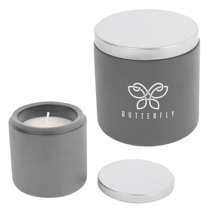 Soy candles are a trend, so get into the market with these promotional candles housed in a durable container made of cali clay cement. The mild scent of vanilla will sooth the mind as the custom logo on the container makes an impression. Soy wax is non-toxic and burns cleaner than paraffin with no petrol-carbon soot. Better for both mind and body, these single wick scented promotional candles will be appreciated as your next custom gift. A one color imprint on one side is included in the price. Second location imprints, including the lid, are available for an added cost. Please call for information.